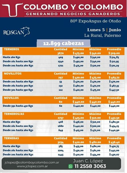 La consignataria dio a conocer los valores promedios de las distintas categorías del Rosgan Especial Angus del lunes 5 de junio.