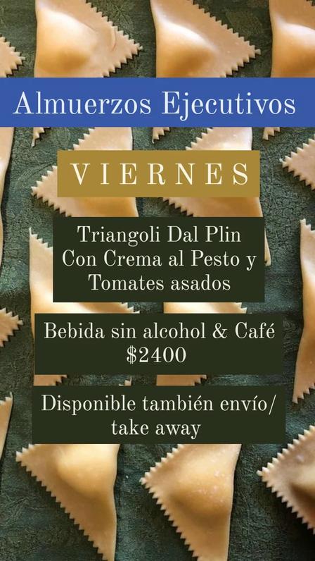 Fuego Sagrado Restaurant cocina triangoli dal plin con crema al pesto y tomates asados.