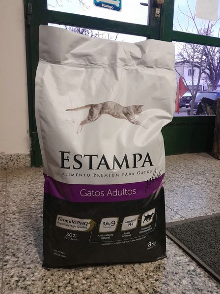 El alimento balanceado para gatos de la firma Estampa cuenta con un 30% de proteínas, viene en envase de 8 kilogramos, y cuesta 7.500 pesos.
