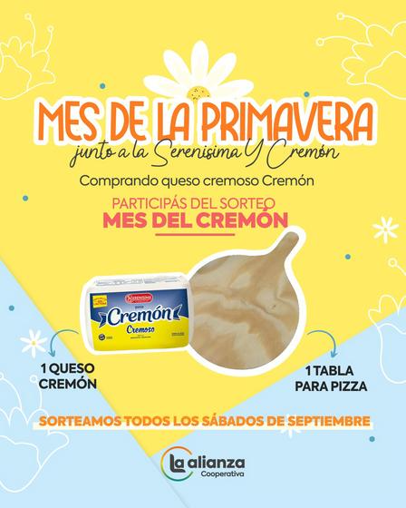 En el Autoservicio de Cooperativa Alianza, comprando queso cremoso Cremón, los clientes participan del sorteo del Mes del Cremón, ya que, todos los sábados hay dos premios: un queso Cremón y una tabla para pizza.
