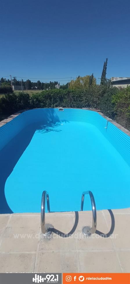 Más trabajos de pintura sobre una pileta son realizados por la firma local en la previa del próximo verano.