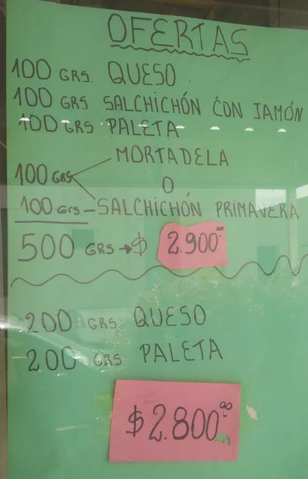 Los 200 gramos de queso más 200 gramos de paleta cuesta 2.800 pesos, mientras que, por 2.900 pesos es posible contar con 500 gramos de fiambre, en Alem 257 de la ciudad.