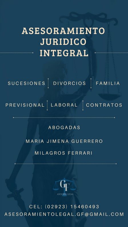 El Estudio Jurídico - Abogadas María Jimena Guerrero y Milagros Ferrari trabaja en asesoramiento jurídico integral, Sucesiones, divorcios, familia, previsional, jubilaciones y pensiones, contratos y derecho laboral.