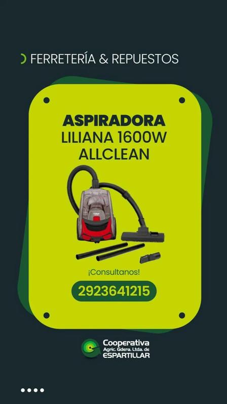 La Cooperativa Agrícola Ganadera Limitada de Espartillar destaca, entre otros artículos, su aspiradora Liliana de 1.600 watts, modelo Allclean.