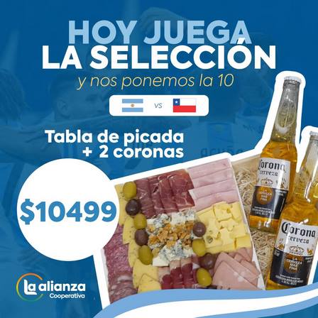 Hoy, martes, como juega la Selección Argentina, hay una oferta, por 10.499 pesos, que incluye una tabla de picada más 2 cervezas Corona.
