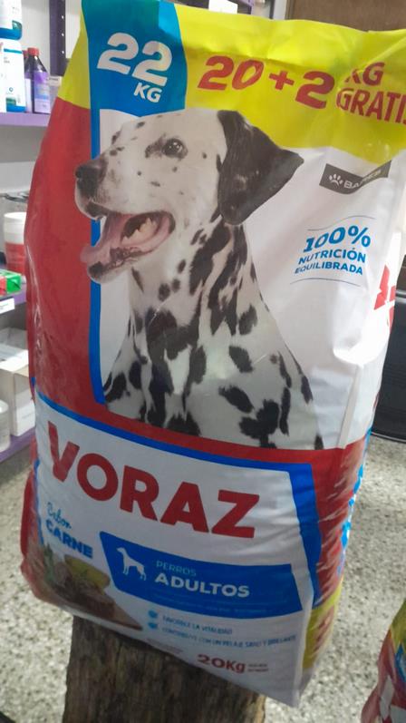La bolsa de 22 kilos del alimento balanceado Voraz, para perros, cuesta 20.000 pesos.