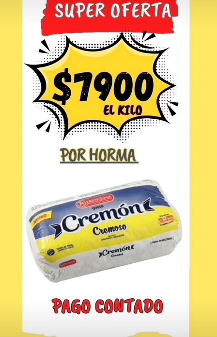 El kilo de queso cremoso Cremón, comprando por horma, cuesta 7.900 pesos pagando contado, mientras que, el kilo de queso Cremac, por media horma o más, sale 5.990 pesos abonando de contado.