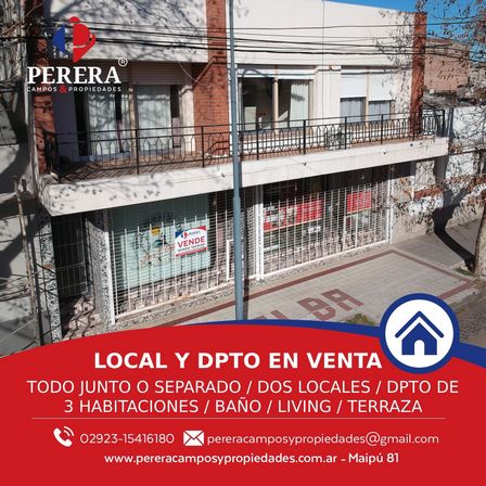 Las consultas pueden llevarse a cabo en Perera Campos y Propiedades, sobre calle Maipú 81, o al teléfono 2923 41 61 80.
