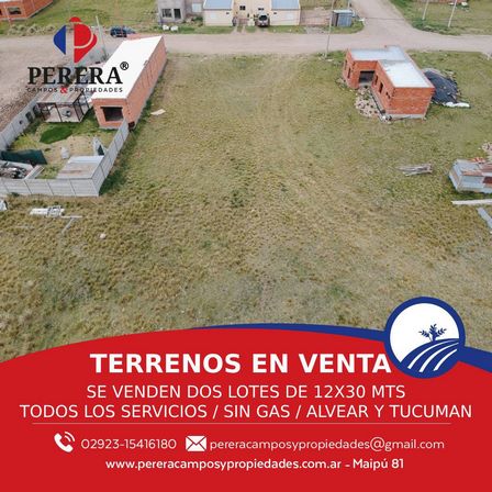 Se venden dos parcelas, a 11.000 dólares cada una, contando con servicios, sin gas, ubicadas en Alvear y Tucumán de Pigüé.