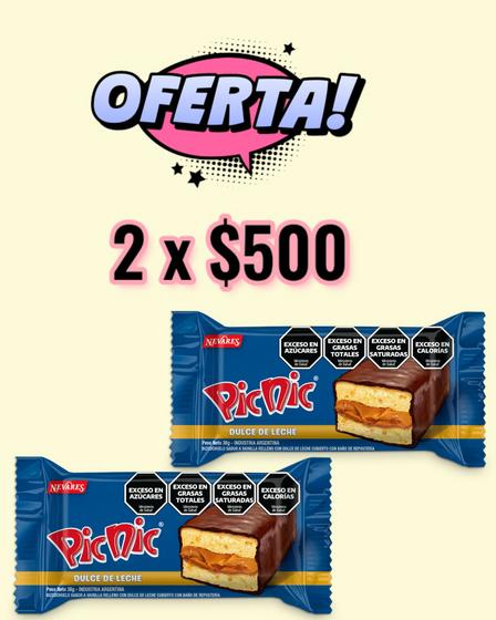 2 Pic Nic con dulce de leche de Nevares salen 500 pesos, 2 Rapsodia de Nevares Mini Torta están a 1.000 pesos, y 3 Smack cuestan 700 pesos.