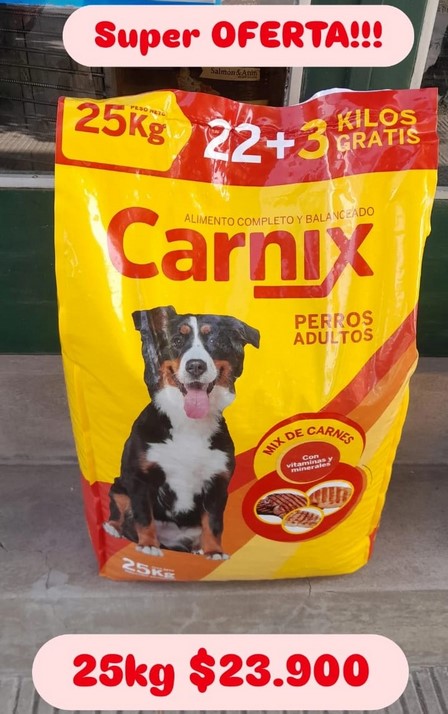 Los 25 kilos cuestan 23.900 pesos con un mix de carnes para perros adultos de la marca Carnix.