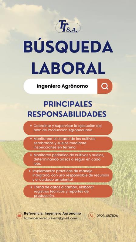 Humanos con Recursos busca Ingeniero Agrónomo para formar parte del equipo de Teodoro Torre SA