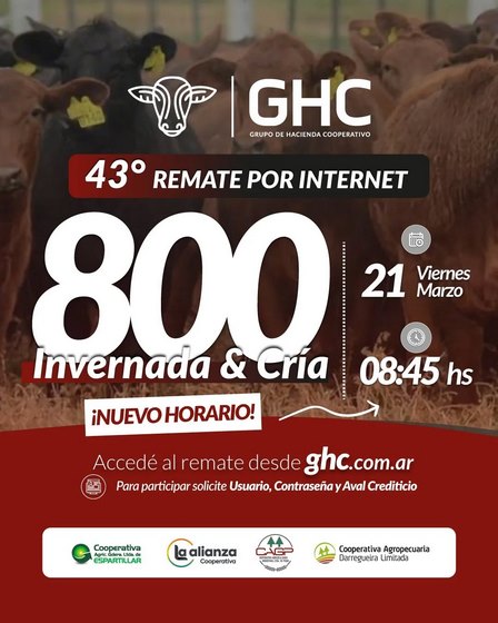 El 43° remate conjunto del Grupo de Hacienda Cooperativo se realizará el día viernes 21 de marzo a las 8.45 horas.