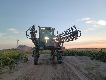 Pulverizaciones El Chala de Mauricio Blanco cuenta con su unidad Metalfor 7040, registrando 41 metros de ancho de labor, con 11 cortes automáticos y dotada de piloto automático.