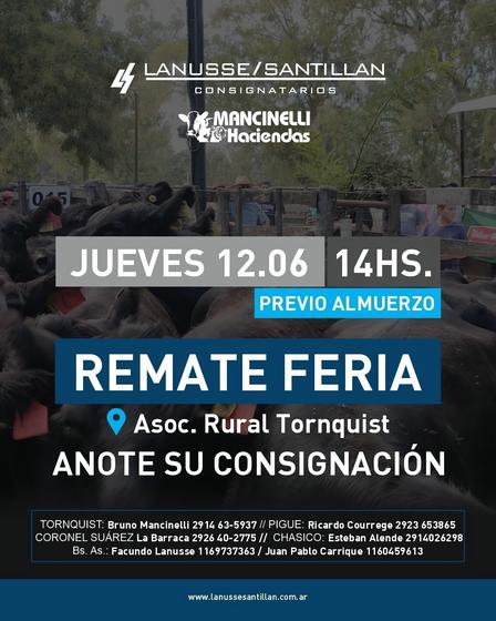 Es posible anotar consignaciones a través de los contactos con Ricardo Courrege, en Pigüé y la zona, a través 2923 65 38 65, en Buenos Aires con Juan Pablo Carrique al 11 60 45 96 13, con Facundo Lanusse al 11 69 73 73 63, o ingresando a www.lanussesantillan.com.ar