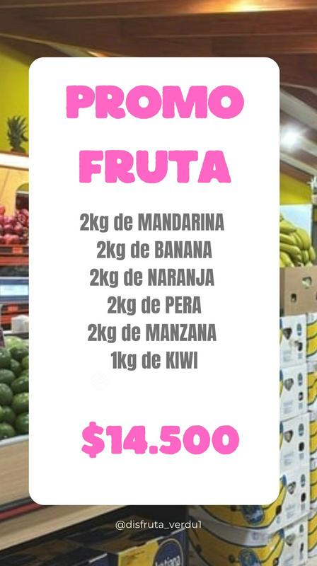 Disfrutá, en su salón de Avenida Carlos Gardel esquina 9 de Julio de Pigüé, por 14.500 pesos es posible conseguir 1 kilo de kiwi, 2 kilos de manzanas, 2 kilos de peras, 2 kilos de naranjas, 2 kilos de bananas y 2 kilos de mandarinas.