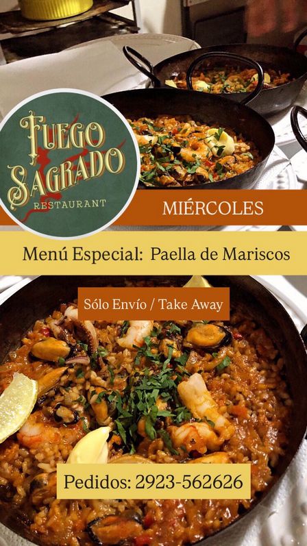 Fuego Sagrado Restaurant prepara hoy paella de mariscos con envío a domicilio