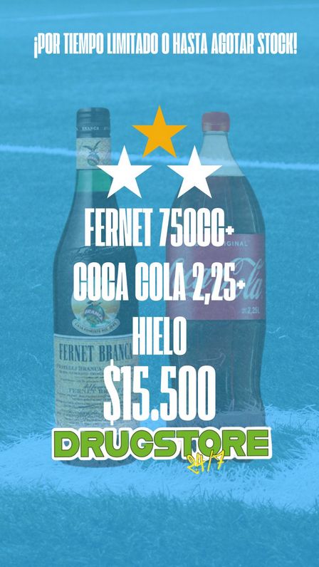 Las 6 latas de cerveza Brahma cuestan 8.500 pesos y el Fernet Branca de 750 mililitros más la botella de Coca Cola de 2.25 litros más hielo está a 15.500 pesos.