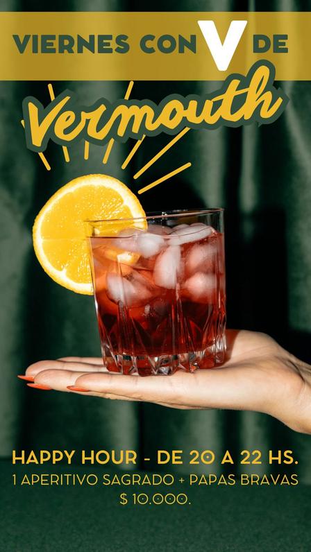 En el salón de calle Bernardo de Irigoyen 431 de la ciudad la iniciativa, de 20.00 a 22.00 horas, incluye en el happy hour 1 Aperitivo Sagrado más papas bravas por 10.000 pesos.