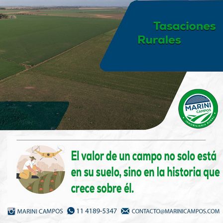 El mensaje publicitario de Marini Campos - Inmobiliaria Rural indica "el valor de un campo no solo está en su suelo sino en la historia que crece sobre él".