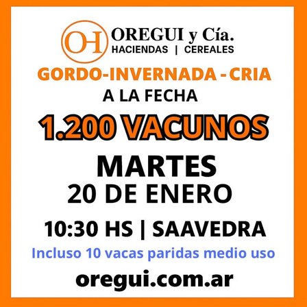Las consultas, para esta subasta de animales, podrán efectuarse al 02923 49 71 67 o a través del sitio www.oregui.com.ar