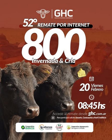 El 52° remate conjunto del Grupo de Hacienda Cooperativo se realizará el día viernes 20 de febrero de 2026 a las 8.45 horas.