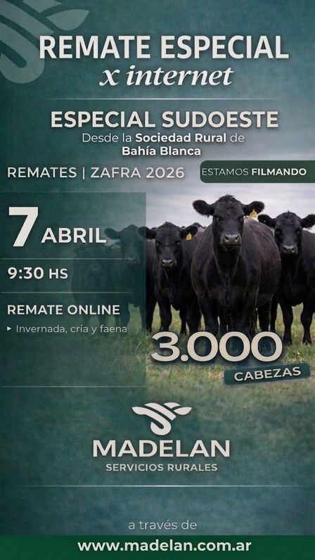 La subasta, que tendrá 3.000 cabezas confirmadas, se hará mañana, martes, 7 de abril, desde las 9.30 horas, online, con ejemplares de invernada, cría y faena.