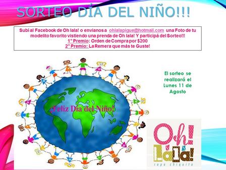 Enviando una imagen a la cuenta de Facebook de Ohlala uno participa del sorteo de una orden de compra y una remera para el Día del Niño.