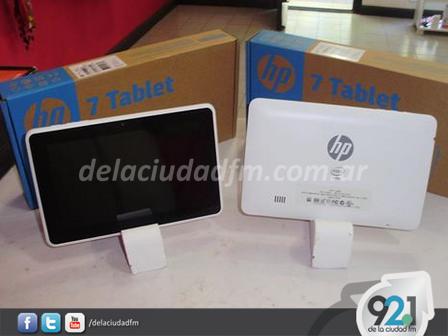 Las tablets HP son de 7'', 8 GB de memoria, 1.0 GHZ, y doble cámara.