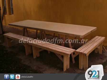 Mesas, caballetes y bancos son algunas de las propuestas que pueden verse en Avenida Martínez 365 de Pigüé.