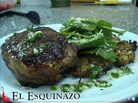 Anoche El Esquinazo preparó Ojo de Bife al Chimi Churri con papas rosti