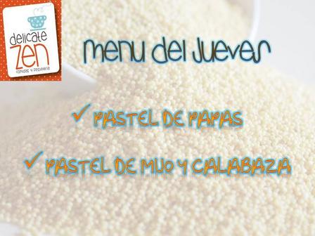 Hoy hay pastel de papas y pastel de mijo y calabaza en Delicate Zen.