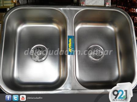 La bacha doble, de acero inoxidable, de 57 centímetros por 37 centímetros y 15 cm., puede conseguirse por $ 1.344.