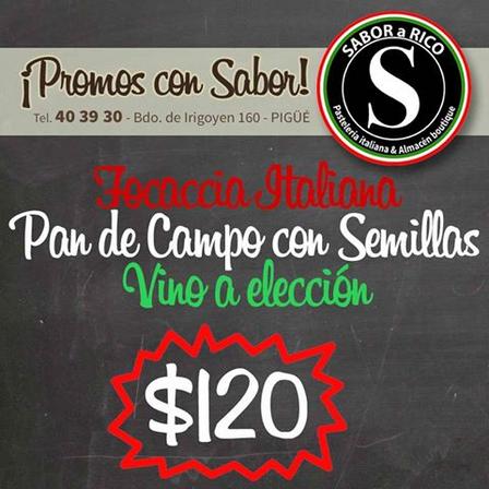 Sabor a Rico promociona un combo de focaccia, pan de campo, y un vino