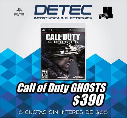 Call of Duty Ghosts para Playstation 3 puede conseguirse a sólo $ 390 o pagando 6 cuotas sin interés de $ 65.