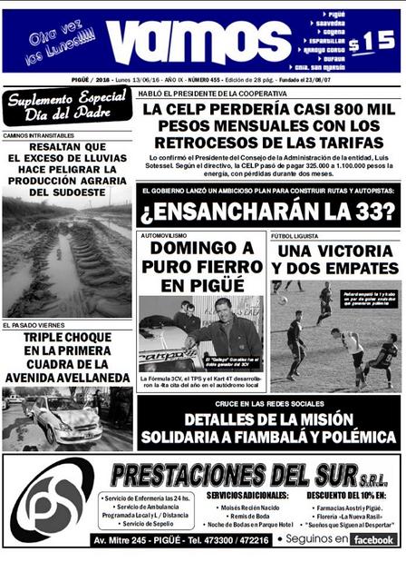 Hoy, lunes 13 de junio, está en las calles el Vamos con 28 páginas, con un Suplemento del del Día del Padre.