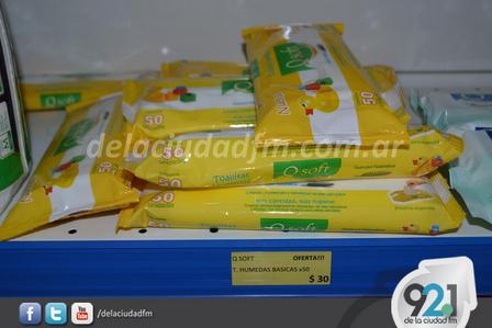 El pack de toallas húmedas, en oferta, tiene un valor de 30 pesos en Ciudad de Rodez 255 de Pigüé.
