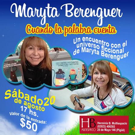 El sábado, a las 17.00 horas, con un valor de la entrada de 50 pesos, habrá un encuentro con el universo ficcional de Maryta Berenguer.