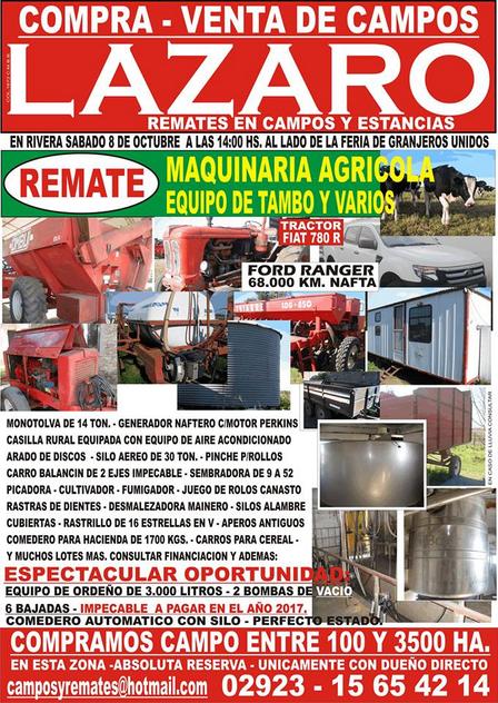 Saldrán a la venta una casilla rural, arados de discos, silos áereos, carros, fumigadores, cultivadores, generadores, monotolvas, una Ford Ranger con 68.000 kilómetros, un tractor, y una sembradora, entre otros.