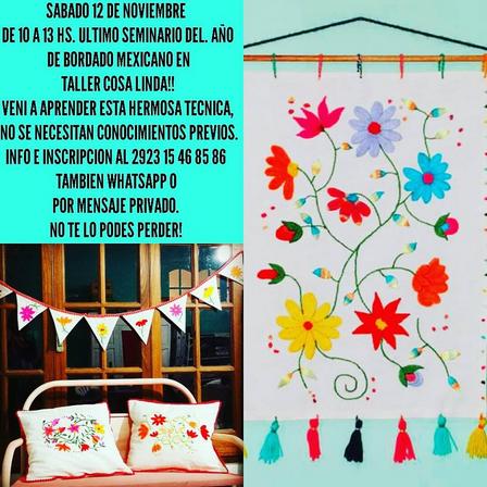 El sábado 12 de noviembre, desde las 10.00 horas, tendrá lugar el último seminario del año de bordado mexicano.