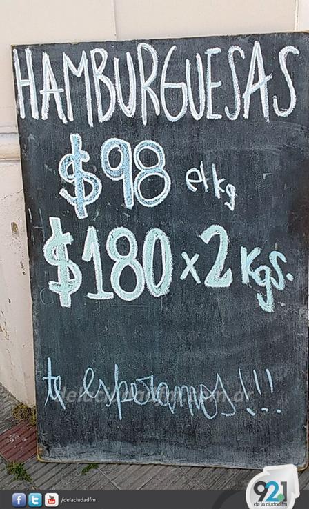 El kilo de hamburguesas cuesta 98 pesos, mientras que, los dos kilos salen 180 pesos.