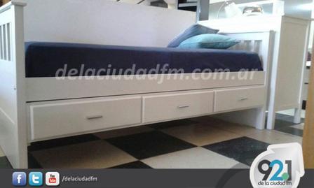 El diván marinero laqueado blanco con cajonera puede encontrarse en el salón de calle Ciudad de Rodez esquina San Martín de la ciudad.