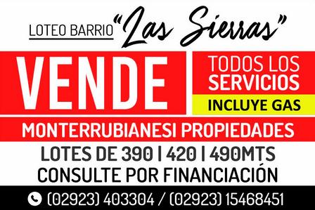 Monterrubianesi propiedades se encuentra promocionando los lotes en el Barrio Las Sierras que incluyen todos los servicios.