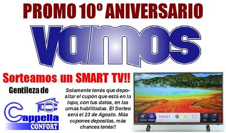 El 23 de agosto estará llevándose a cabo el sorteo de un Smart TV por el décimo aniversario de Semanario Vamos.