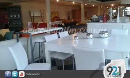 En el local de calle Ciudad de Rodez esquina España de la ciudad promocionan las sillas tapizadas en blanco con patas en caño color cromo.