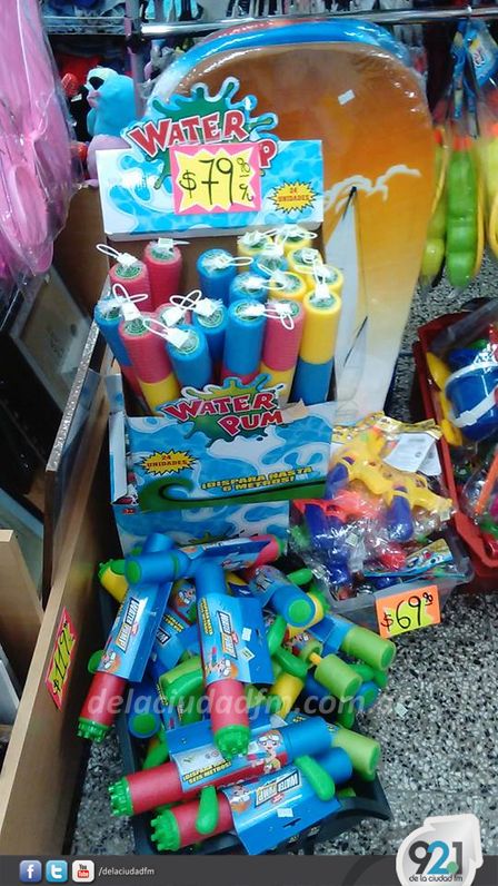 En el local de calle Ciudad de Rodez 169 de la localidad hay colchonetas, inflables, brazos para la pileta, y pistolas para el agua.
