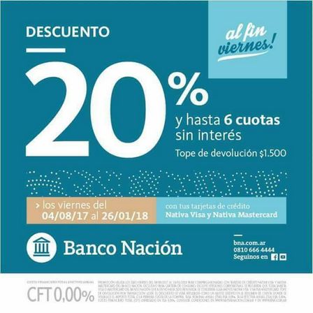 Con tarjetas de crédito del Banco Nación hoy, viernes, rige un 20 por ciento de rebaja y hasta 6 cuotas sin interés en Giro Didáctico.