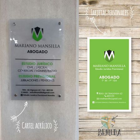 El cartel acrílico y las tarjetas personales para el Estudio Mansilla pueden divisarse allí.