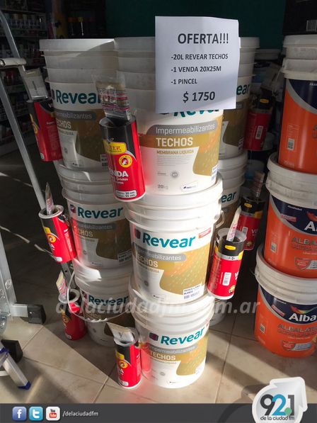 20 litros de Revear para techos, más un pincel, y una venda de 20 metros por 25 metros cuestan 1.750 pesos.