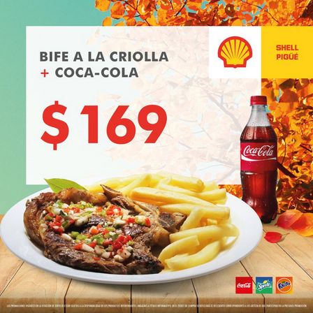 La porción de bife a la criolla, más una gaseosa, tiene un valor de 169 pesos.